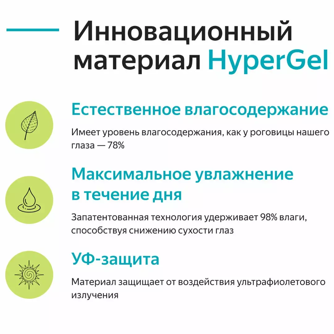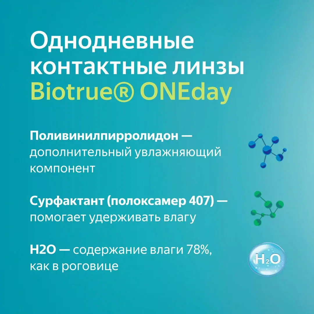Biotrue® ONEday for Presbyopia — однодневные мультифокальные контактные линзы из инновационного материала HyperGel, влагосодержание которого соответствует количеству воды в роговице глаза человека — 78%.